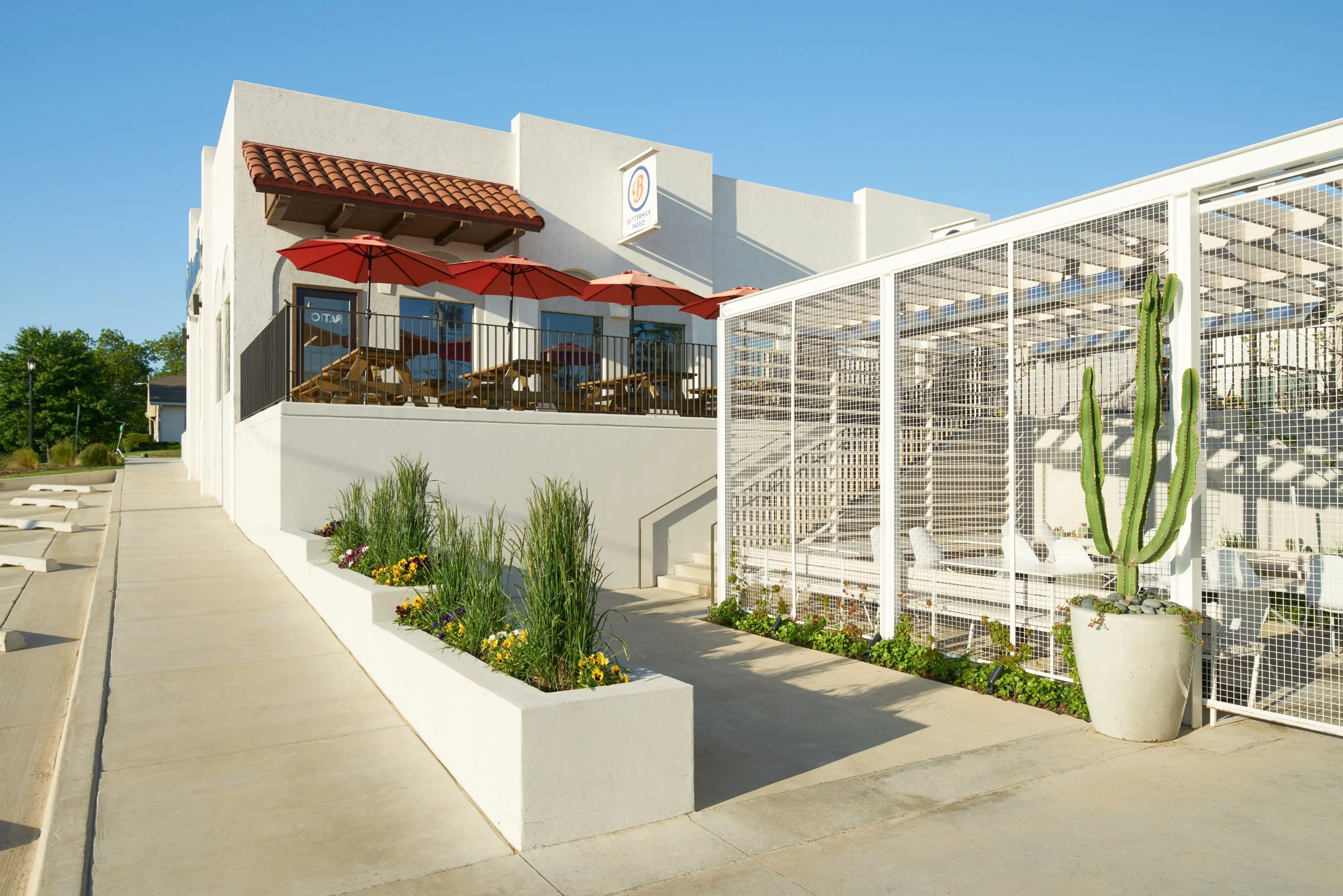 Pueblo at Paseo transformed one of the last vacant lots in the district into a master-planned, three-building development totaling 7,500 square feet. Designed by Sam Gresham, the project creates a cohesive streetscape organized around a central courtyard that connects restaurants, retail, and creative office tenants.